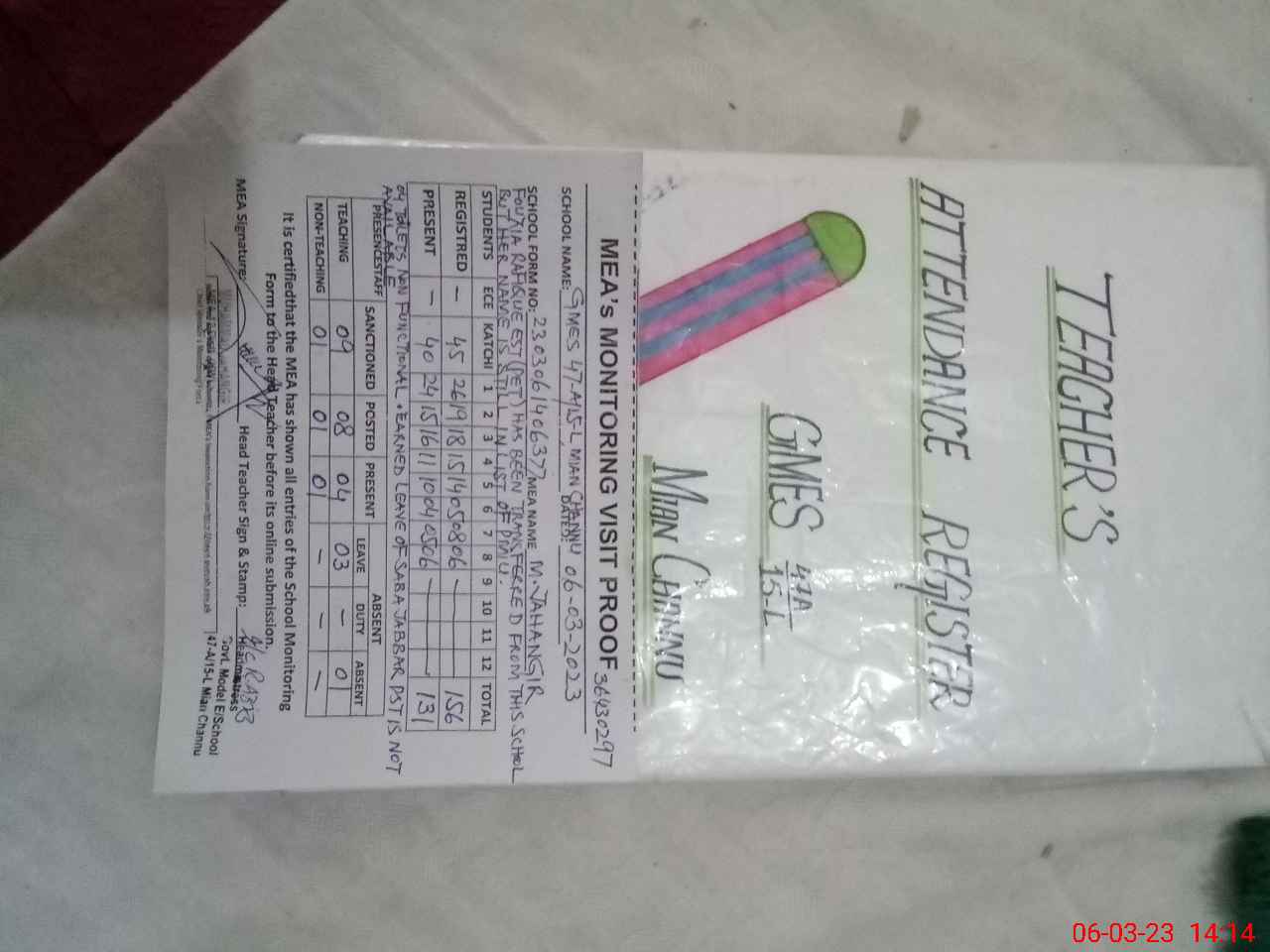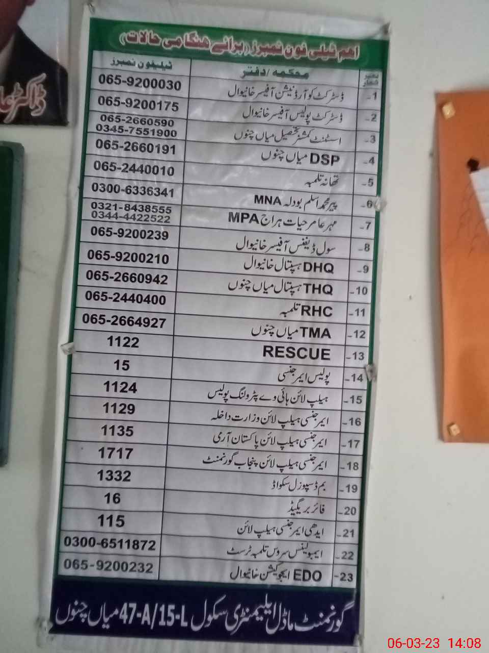 | EMIS Code: 36430297 | Name of School: GMES 47-A/15-L, MIAN CHANNU | |||