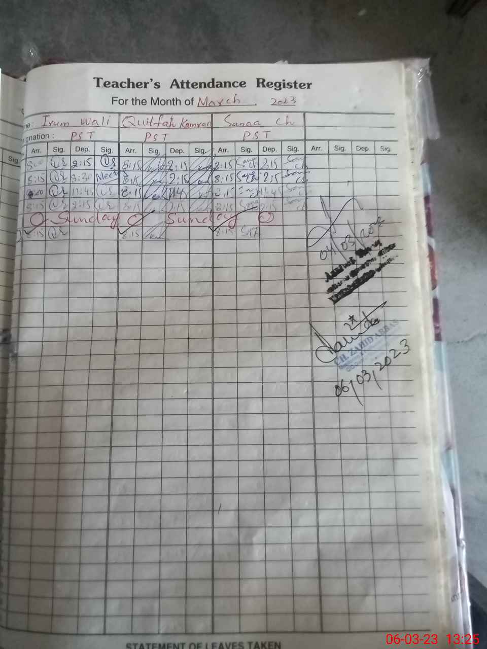 | Name: Ir**** Ha**** Designation: (School Headmaster's/Headmistress's) Headmistress Phone/Cell Number: 03**** |