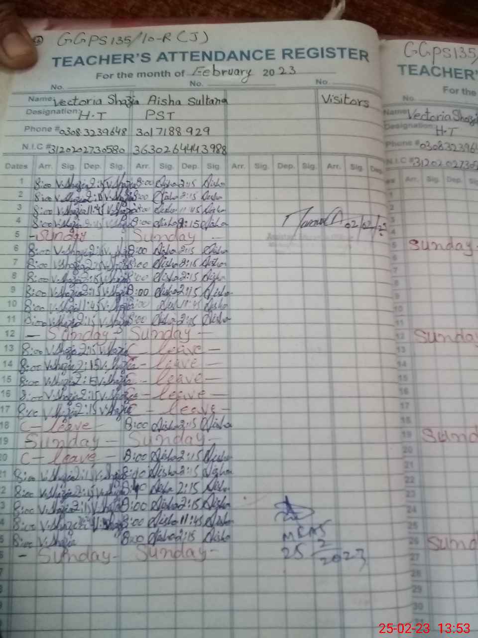 | Name: Ve**** Sh**** Designation: (School Headmaster's/Headmistress's) ESE (ARTS) Phone/Cell Number: 03**** |