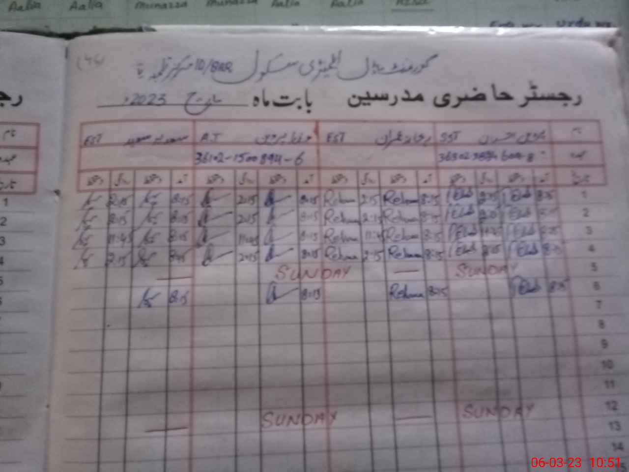 | Name: PE**** EH**** Designation: (School Headmaster's/Headmistress's) S.S.T.(general) Phone/Cell Number: 03**** |