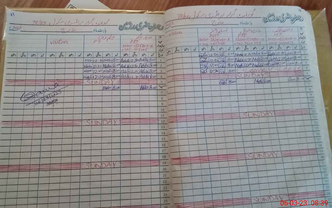 | Attendance Register | Head Teacher | MEA with School | Visit Proof |