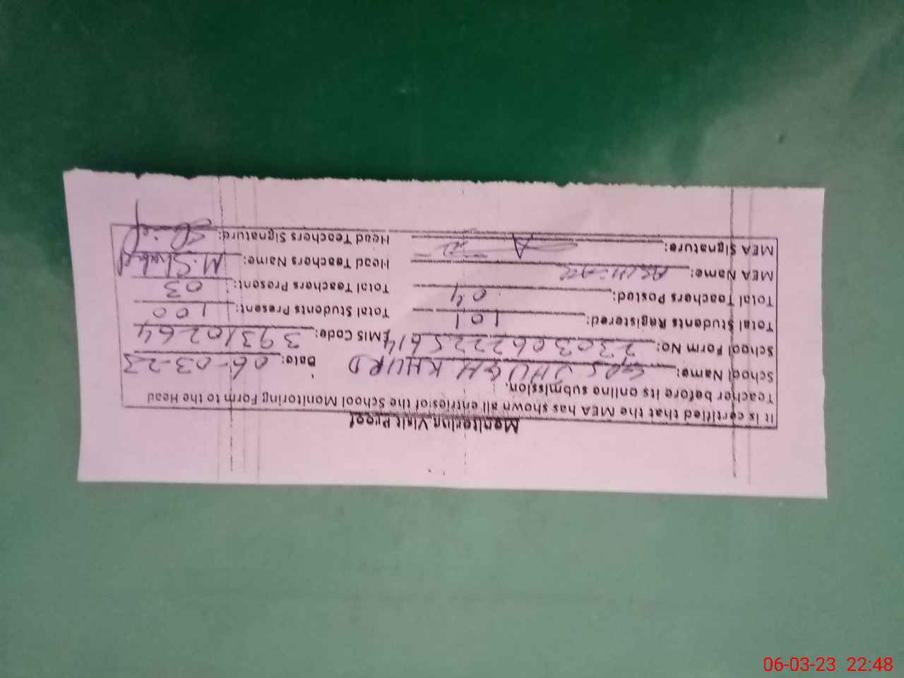 | Name: SA**** PA**** Designation: (School Headmaster's/Headmistress's) PST Phone/Cell Number: 03**** |