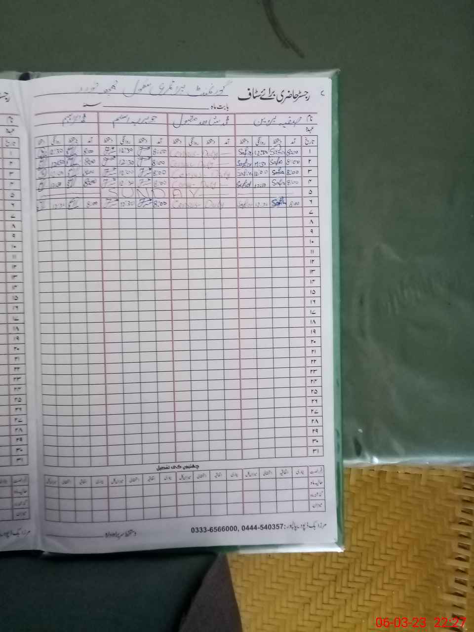 | CNIC | Full Name | Designation | R/C | Absence During Last Calender Month |