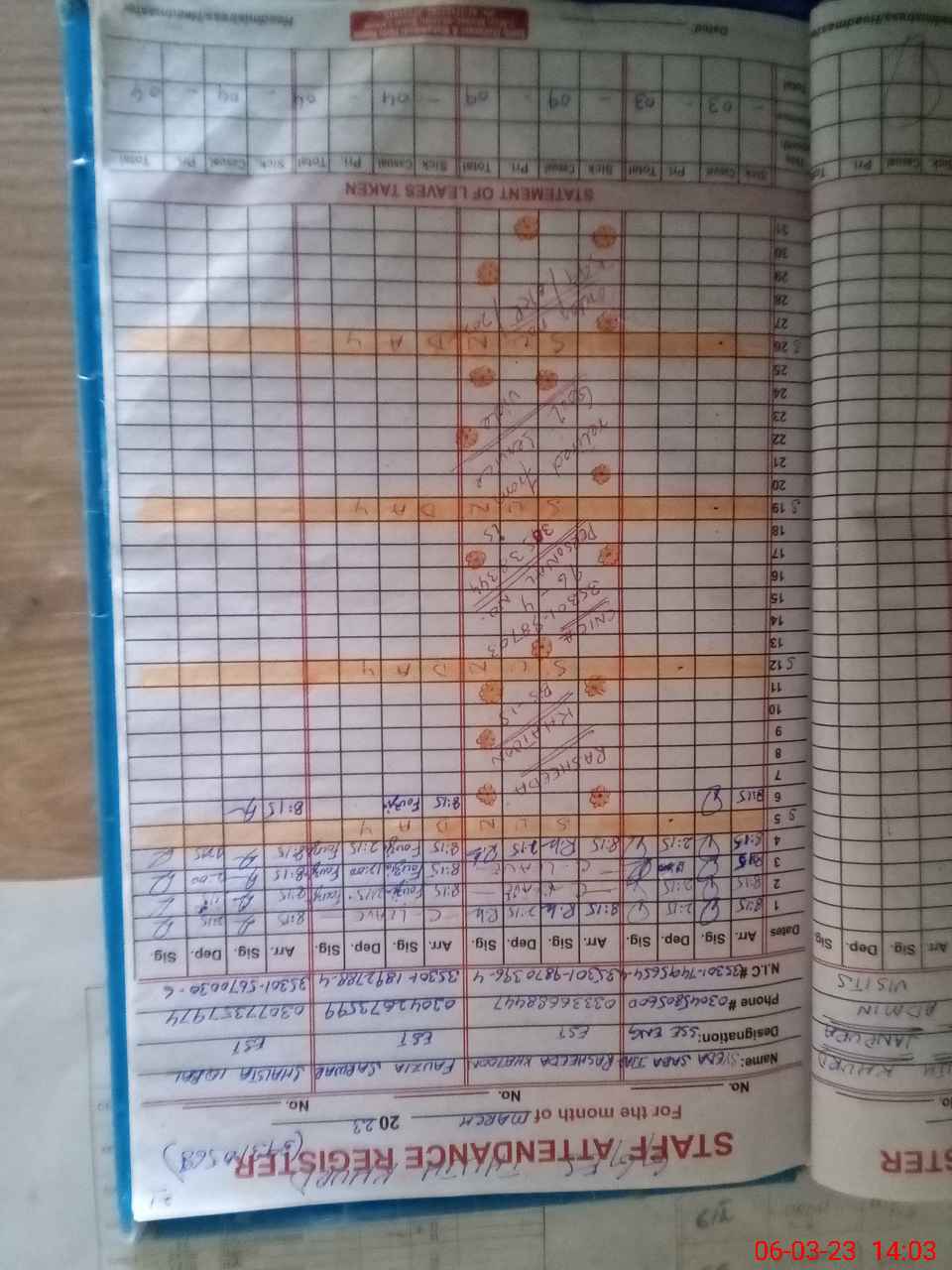 | CNIC | Full Name | Designation | R/C | Absence During Last Calender Month |