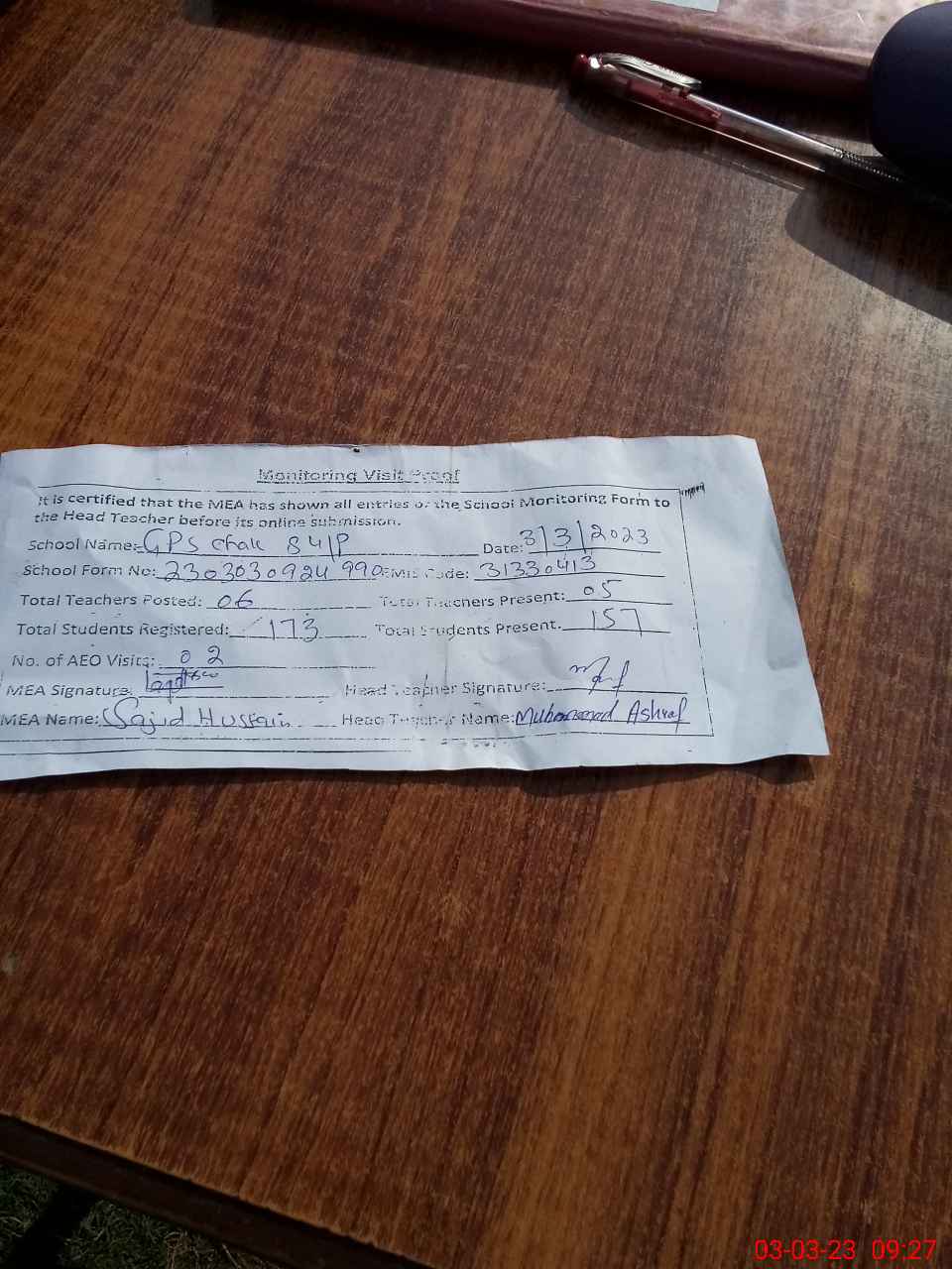 | EMIS Code: 31330413 | Name of School: GPS CHAK 84/P | |||