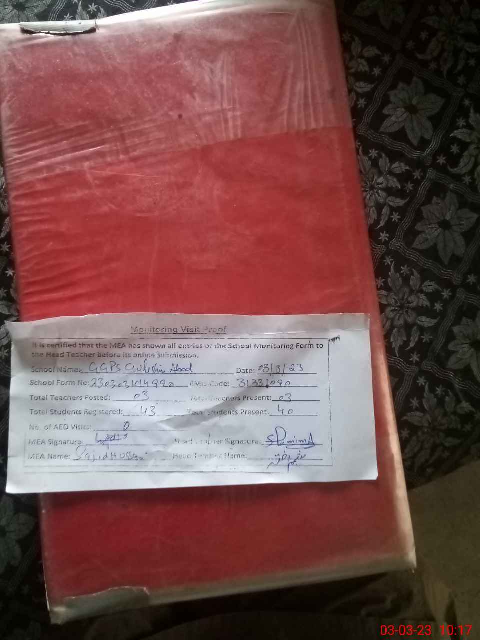 | Attendance Register | Head Teacher | MEA with School | Visit Proof |