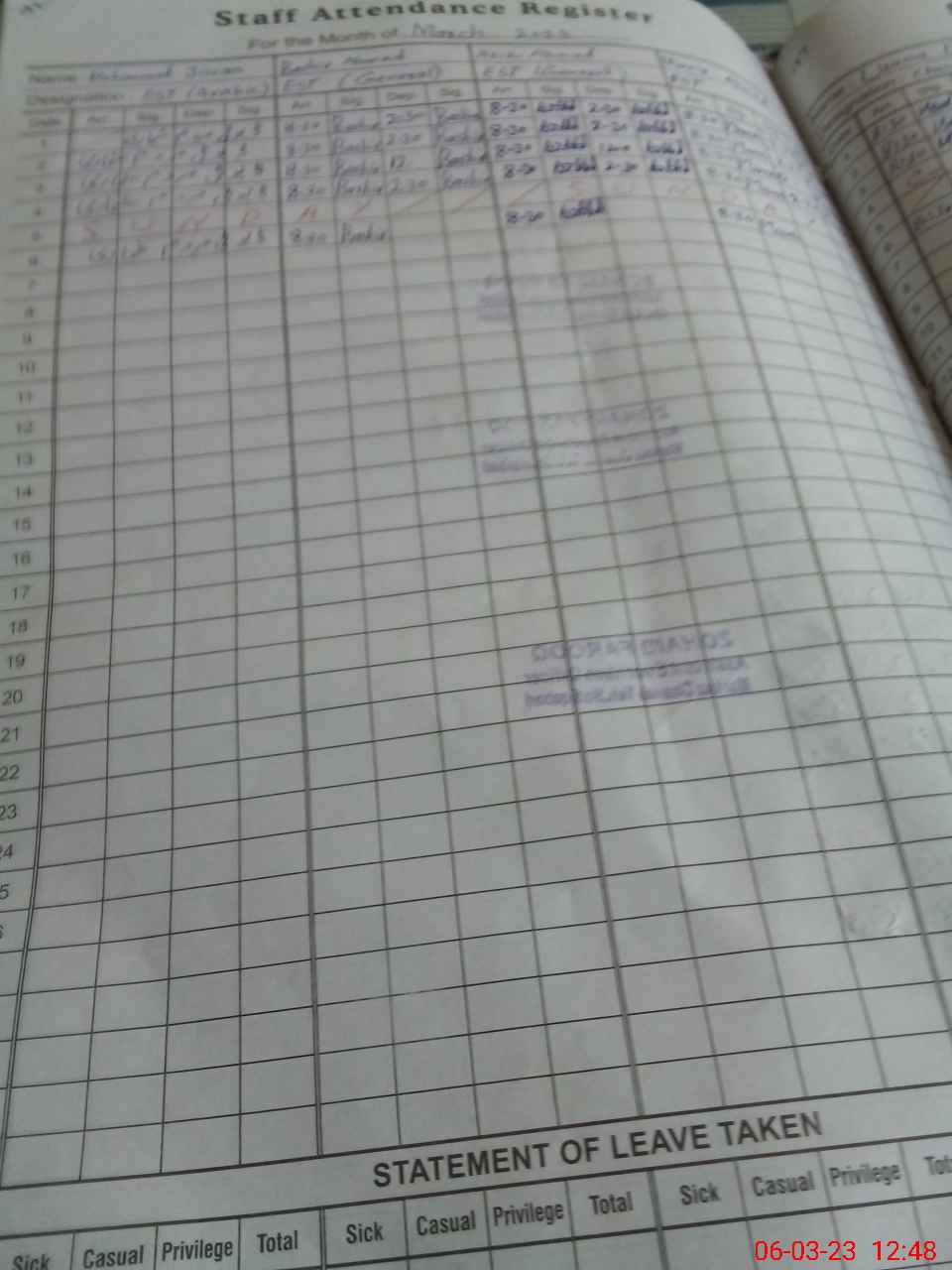 | CNIC | Full Name | Designation | R/C | Absence During Last Calender Month |