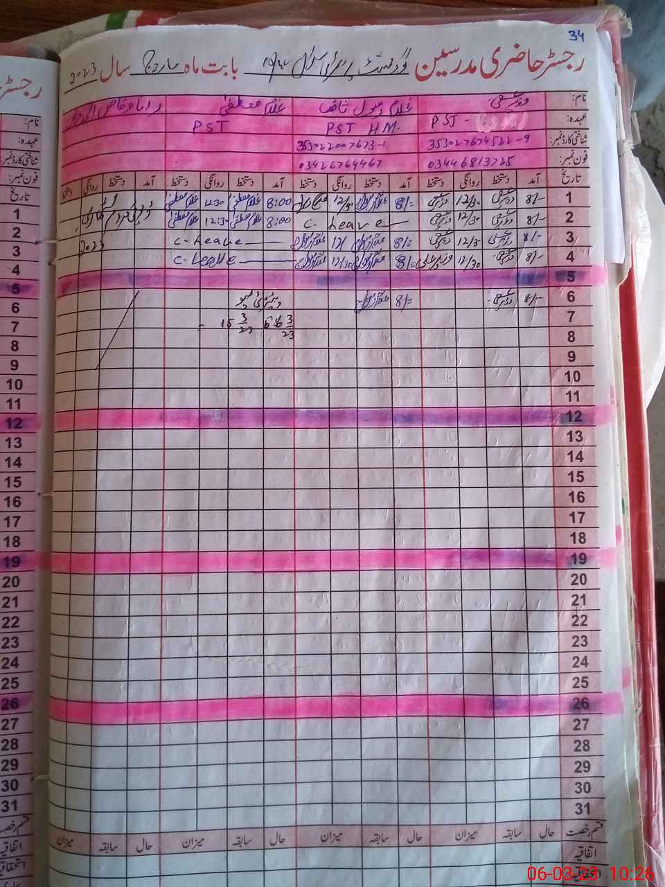 | Name: Na**** As**** Designation: (School Headmaster's/Headmistress's) PST Phone/Cell Number: 03**** |