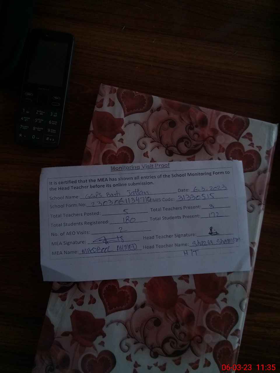 | EMIS Code: 31330515 | Name of School: GGPS BASTI JATTAN R.Y.KHAN | |||