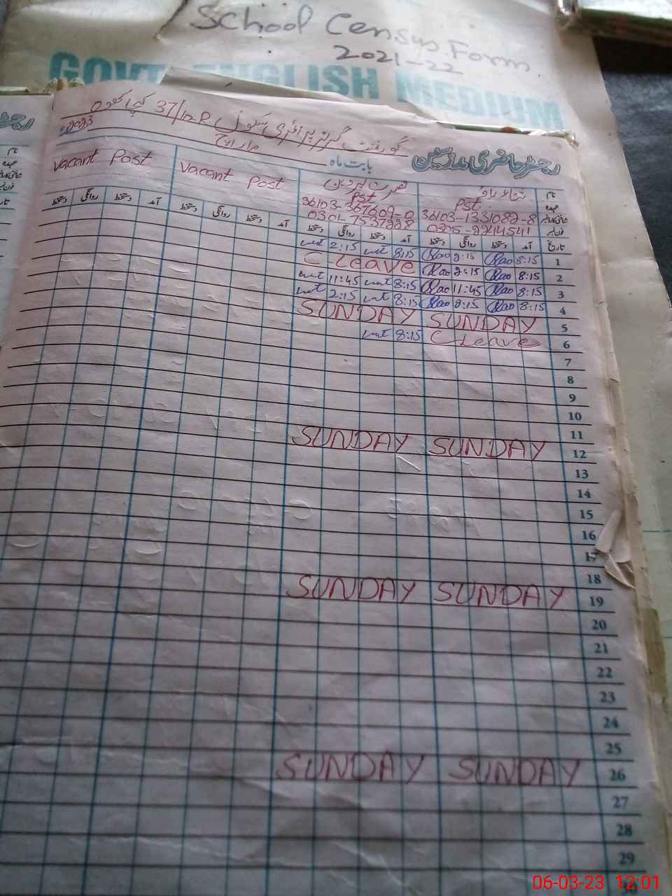 | Name: Sa**** Ra**** Designation: (School Headmaster's/Headmistress's) PST Phone/Cell Number: 03**** |