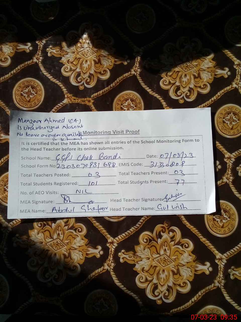 | EMIS Code: 31330809 | Name of School: GGPS CHAK BANDI | |||