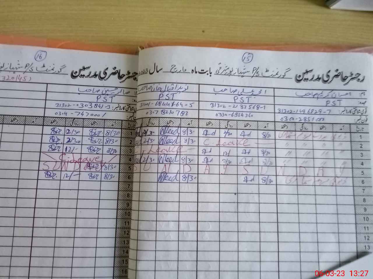 | CNIC | Full Name | Designation | R/C | Absence During Last Calender Month |