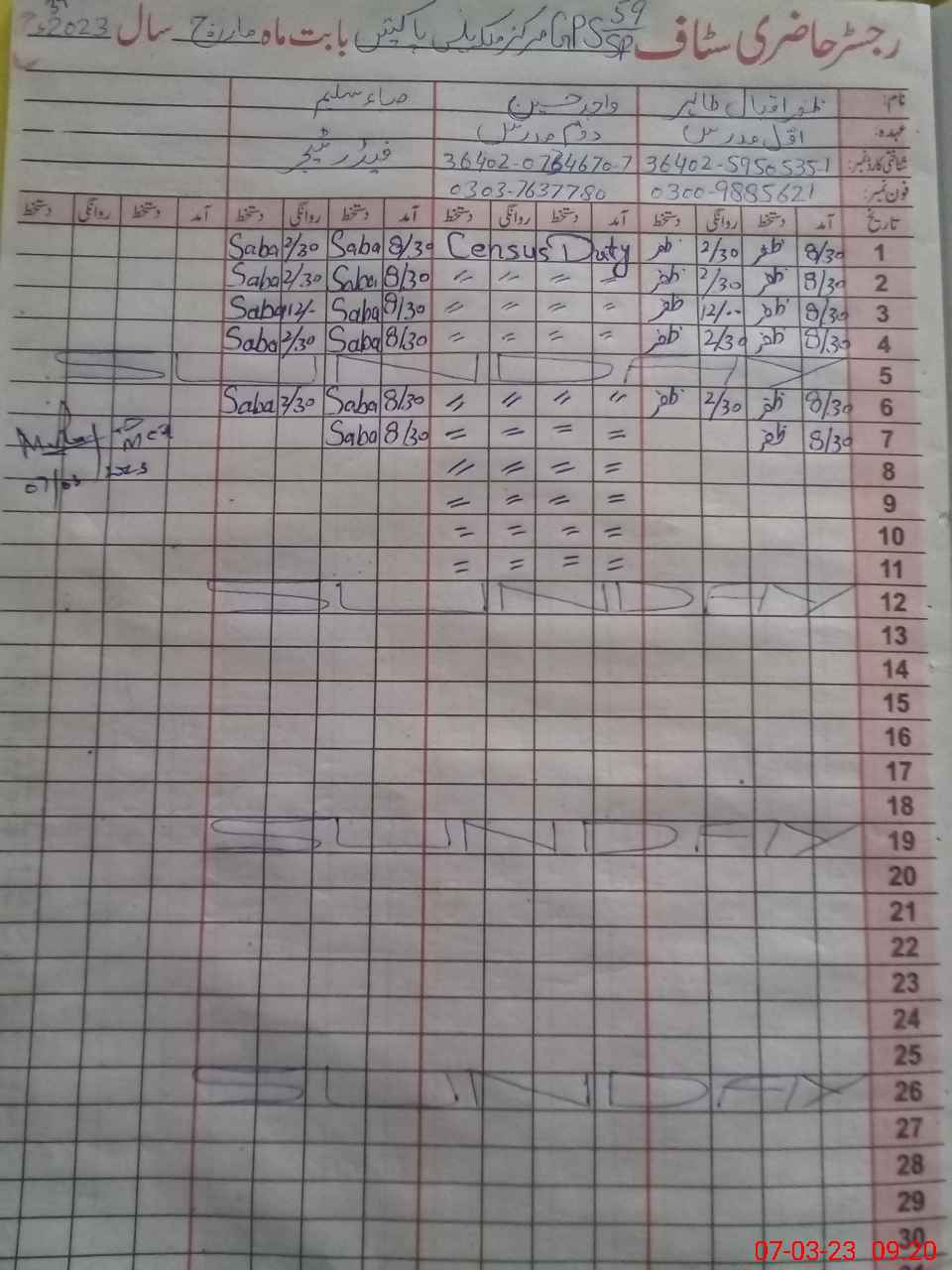 | Name: ZA**** IQ**** TA**** Designation: (School Headmaster's/Headmistress's) PST Phone/Cell Number: 03**** |