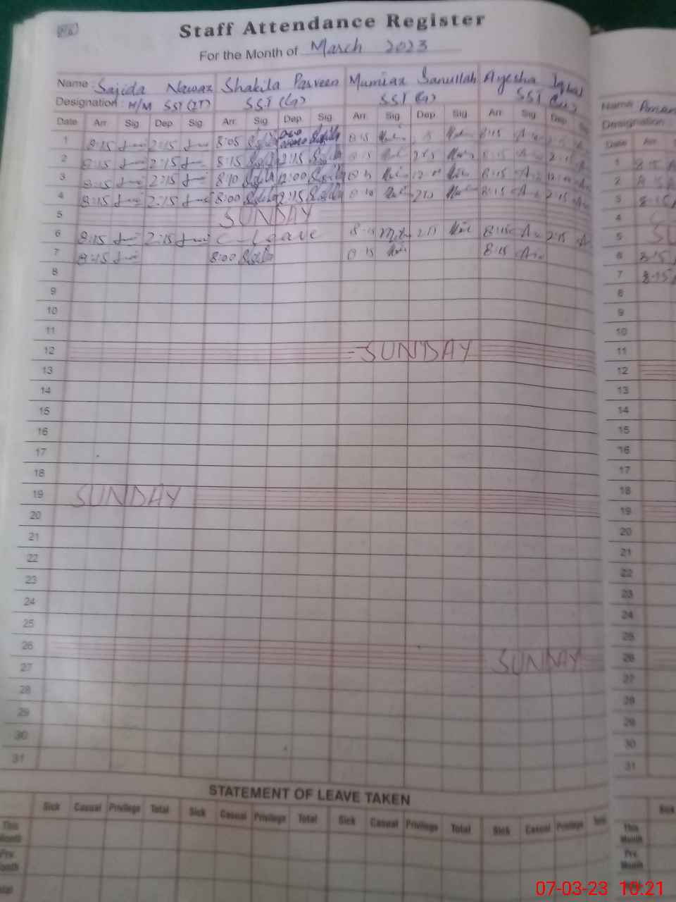 | Leave | Duty | Absent | Maternity | Medical | Ex- Pak |