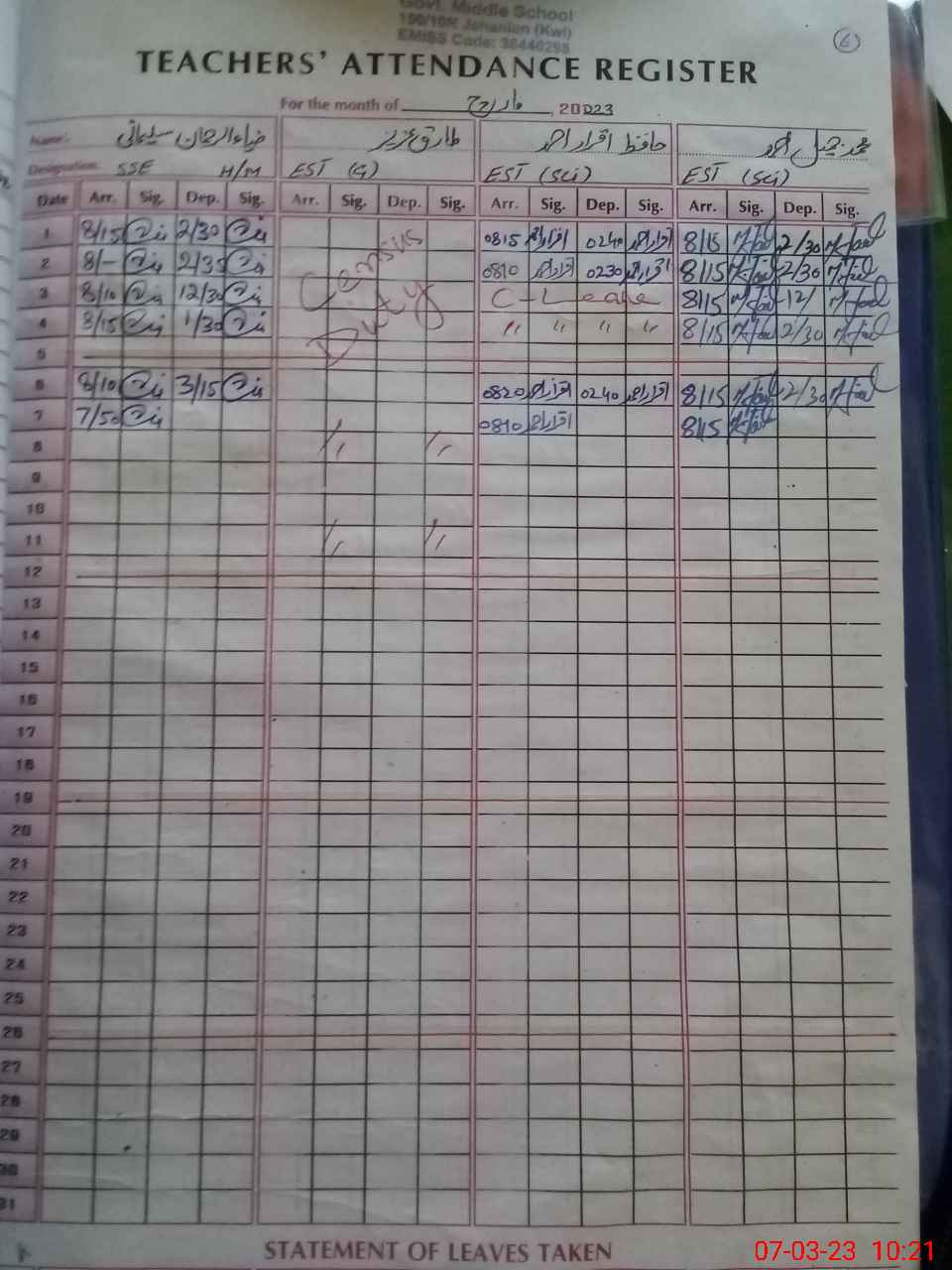 | Name: ZI**** Designation: (School Headmaster's/Headmistress's) SSE(ENG) Phone/Cell Number: 03**** |