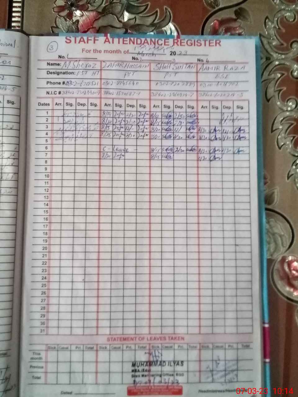 | Name: MU**** SH**** Designation: (School Headmaster's/Headmistress's) PST Phone/Cell Number: 03**** |