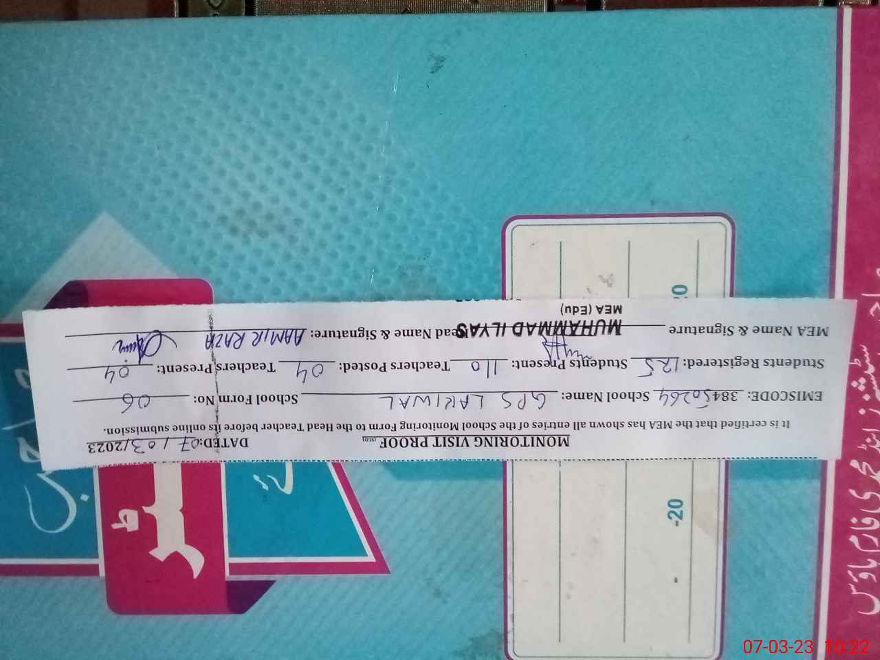 | Certified that this School was Inspected by the Undersigned MEA/DMO Today and the Information Stated Above is as Per Record. | |||||