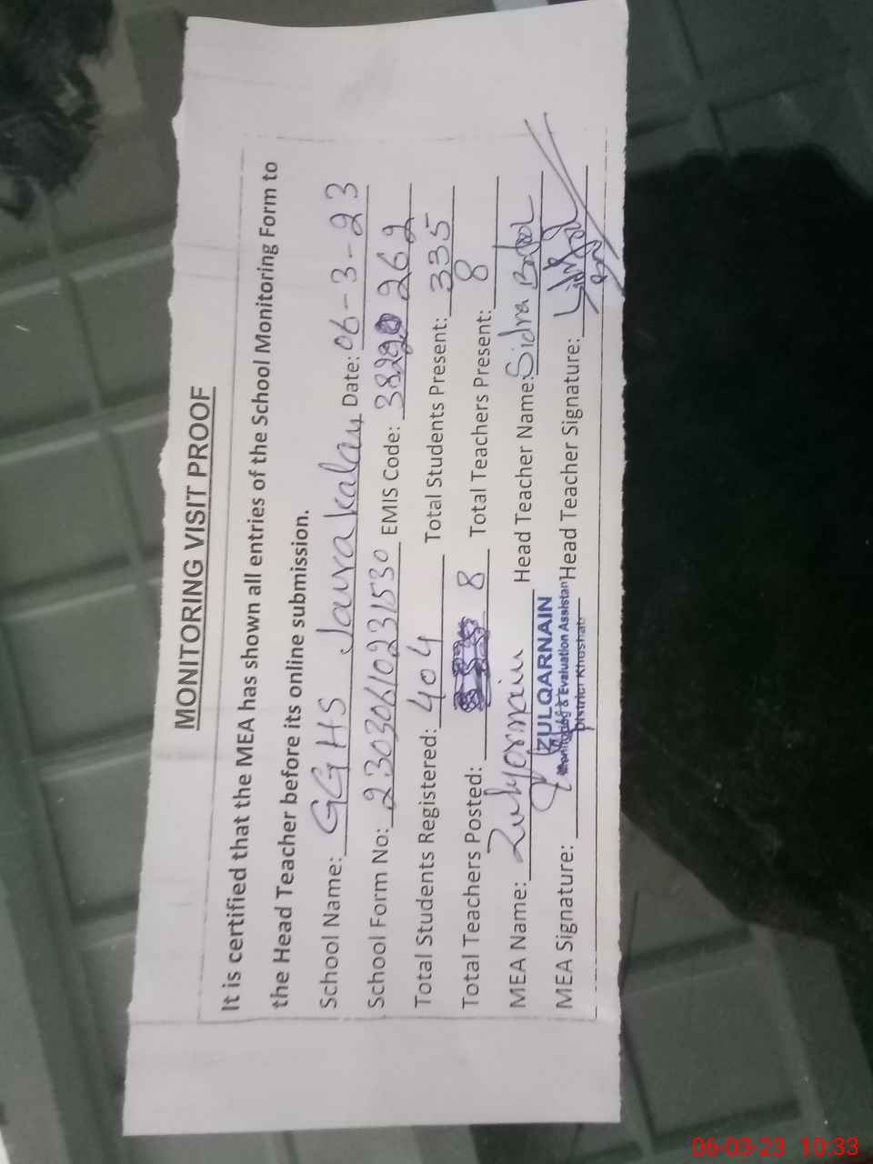 | EMIS Code: 38220262 | Name of School: GGHS JAURA KALAN | |||