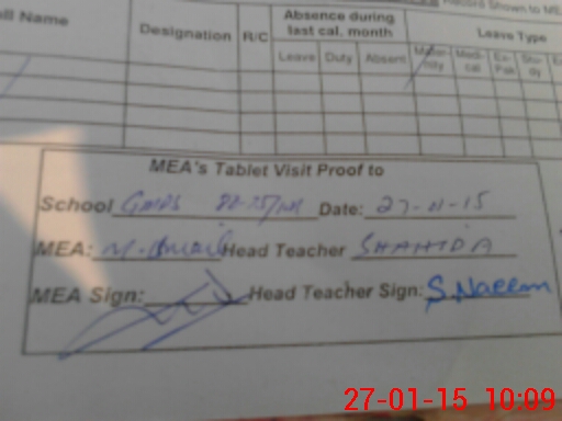 | Attendance Register | Head Teacher | MEA with School | Visit Proof |