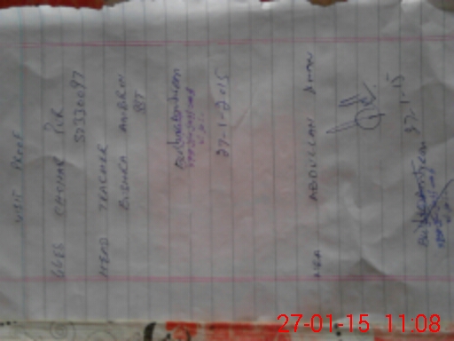 | Monitoring Date: 27-01-2015 | Start Time: 27-01-2015 10:42 AM | End Time: 27-01-2015 11:14 AM | Name of MEA: Ab**** Kh**** | |