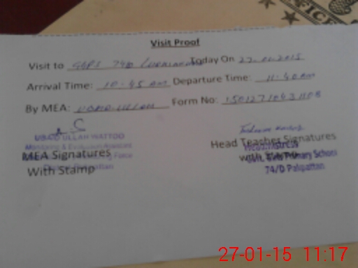 | Attendance Register | Head Teacher | MEA with School | Visit Proof |
