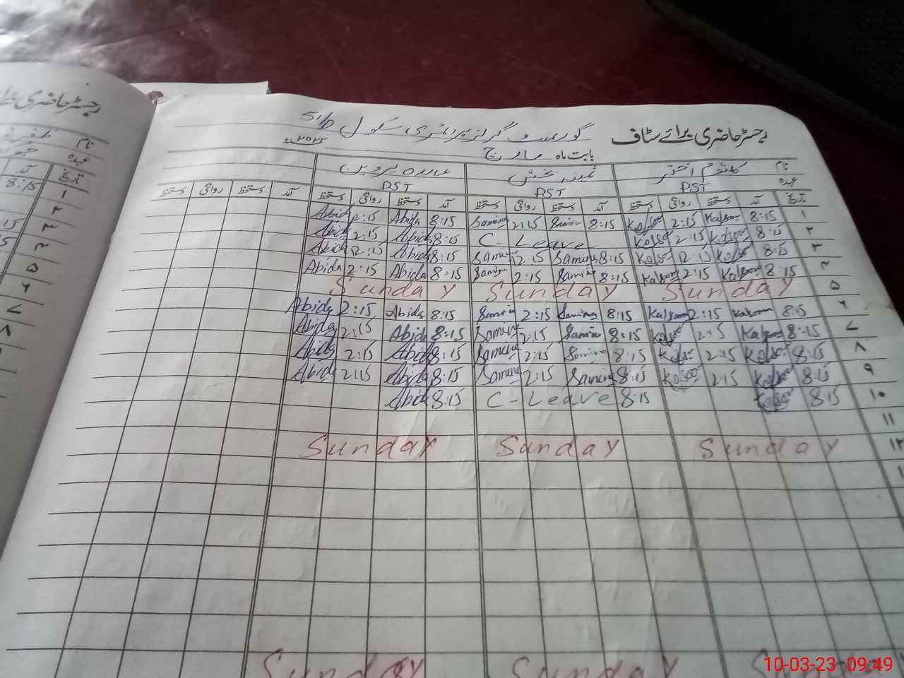| Leave | Duty | Absent | Maternity | Medical | Ex- Pak |