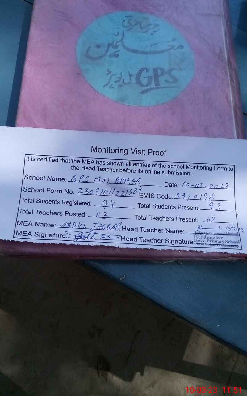 | EMIS Code: 39210196 | Name of School: GPS MAL BOHAR PO PAKPATTAN | |||