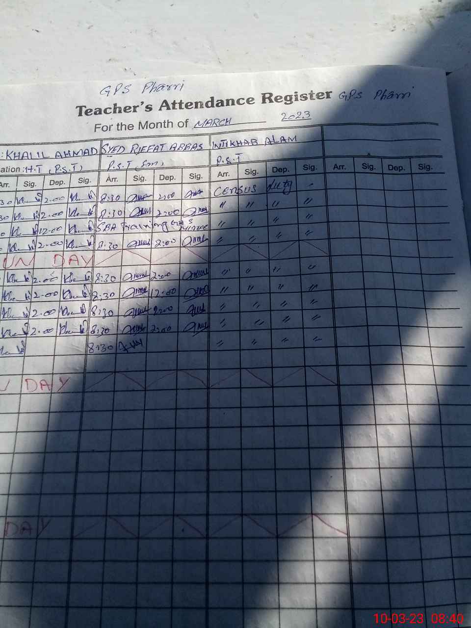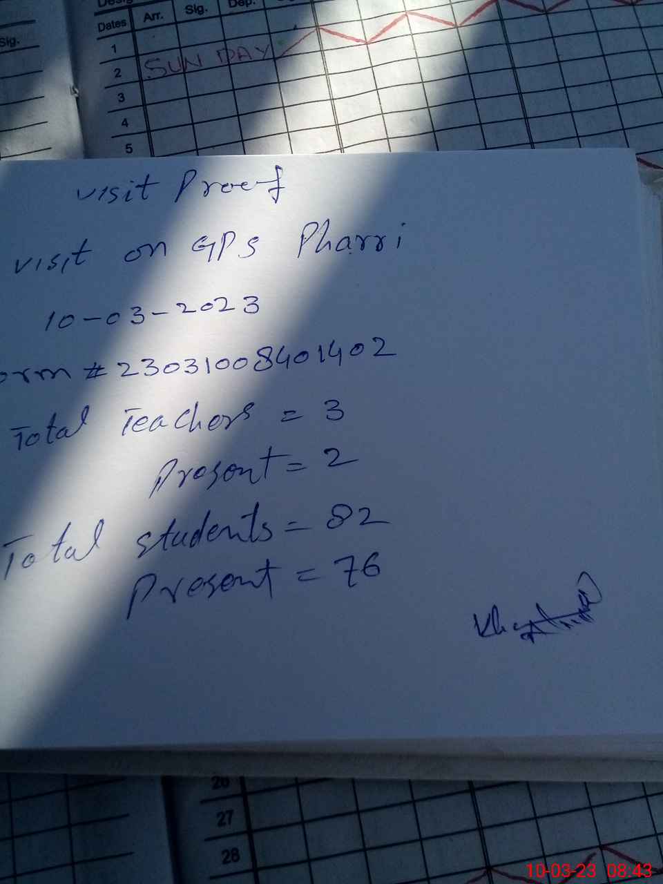 | Name: Kh**** Ah**** Designation: (School Headmaster's/Headmistress's) PST Phone/Cell Number: 03**** |