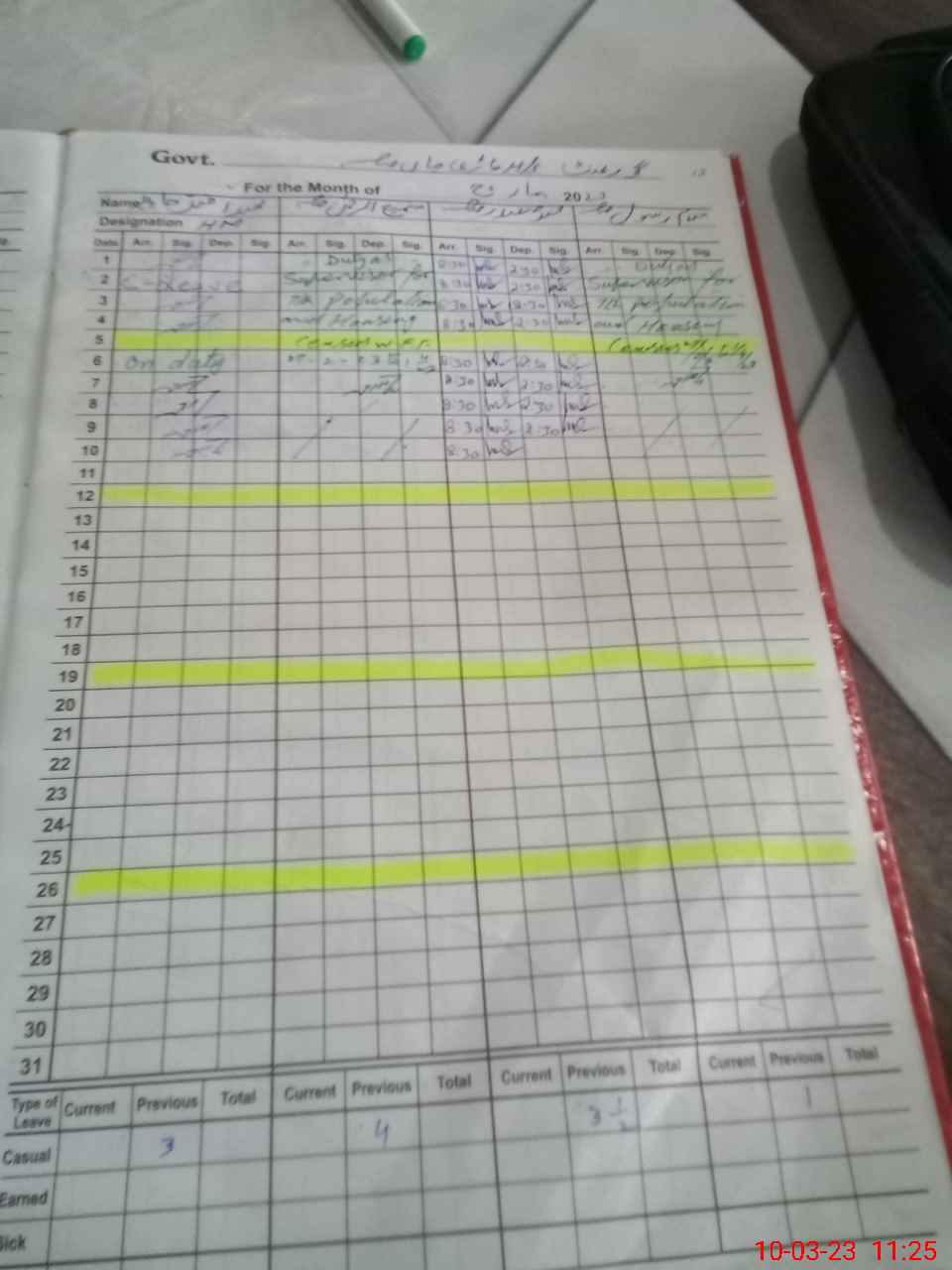 | CNIC | Full Name | Designation | R/C | Absence During Last Calender Month |
