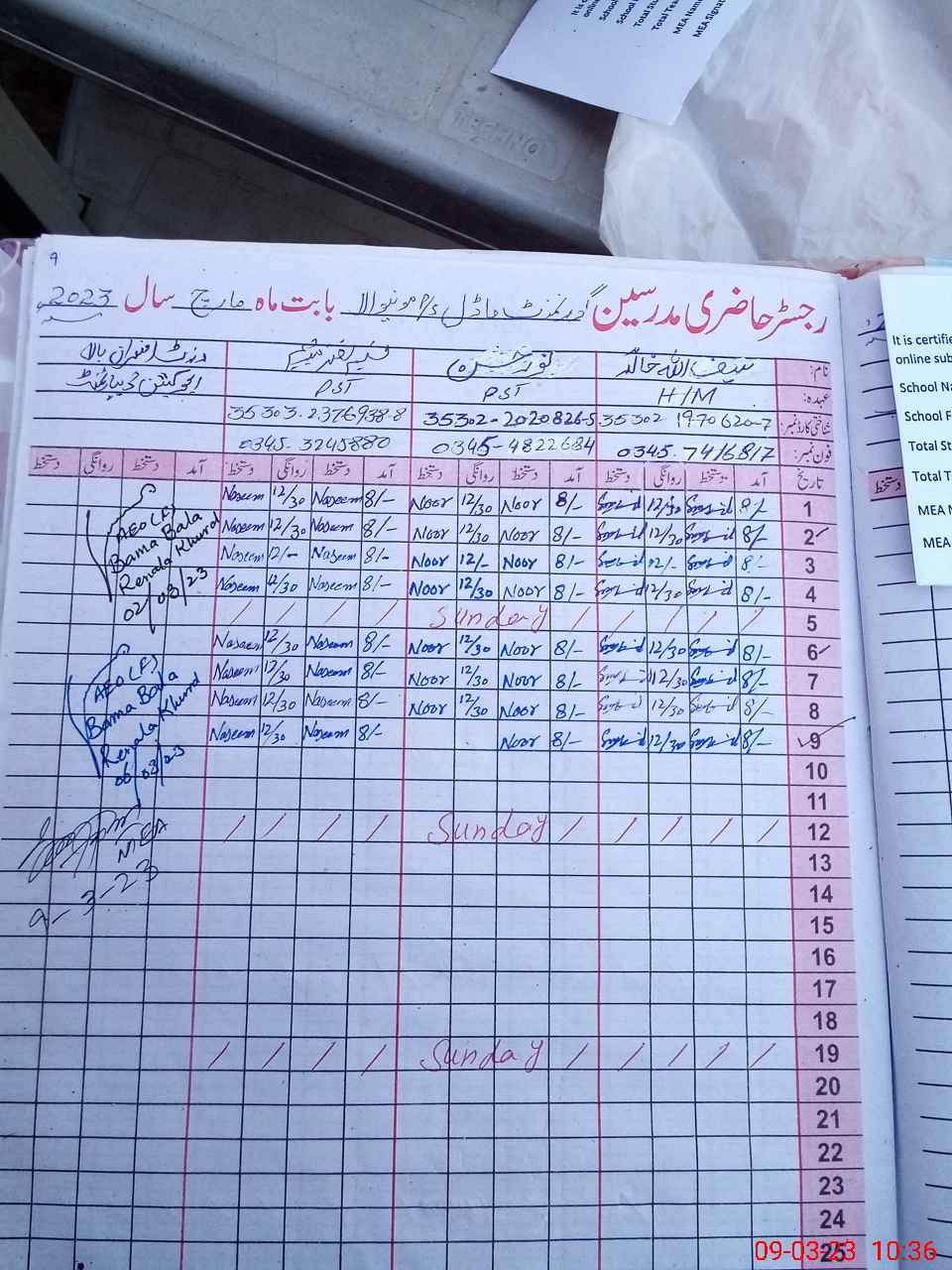 | Name: Sa**** Al**** Kh**** Designation: (School Headmaster's/Headmistress's) PST Phone/Cell Number: 03**** |