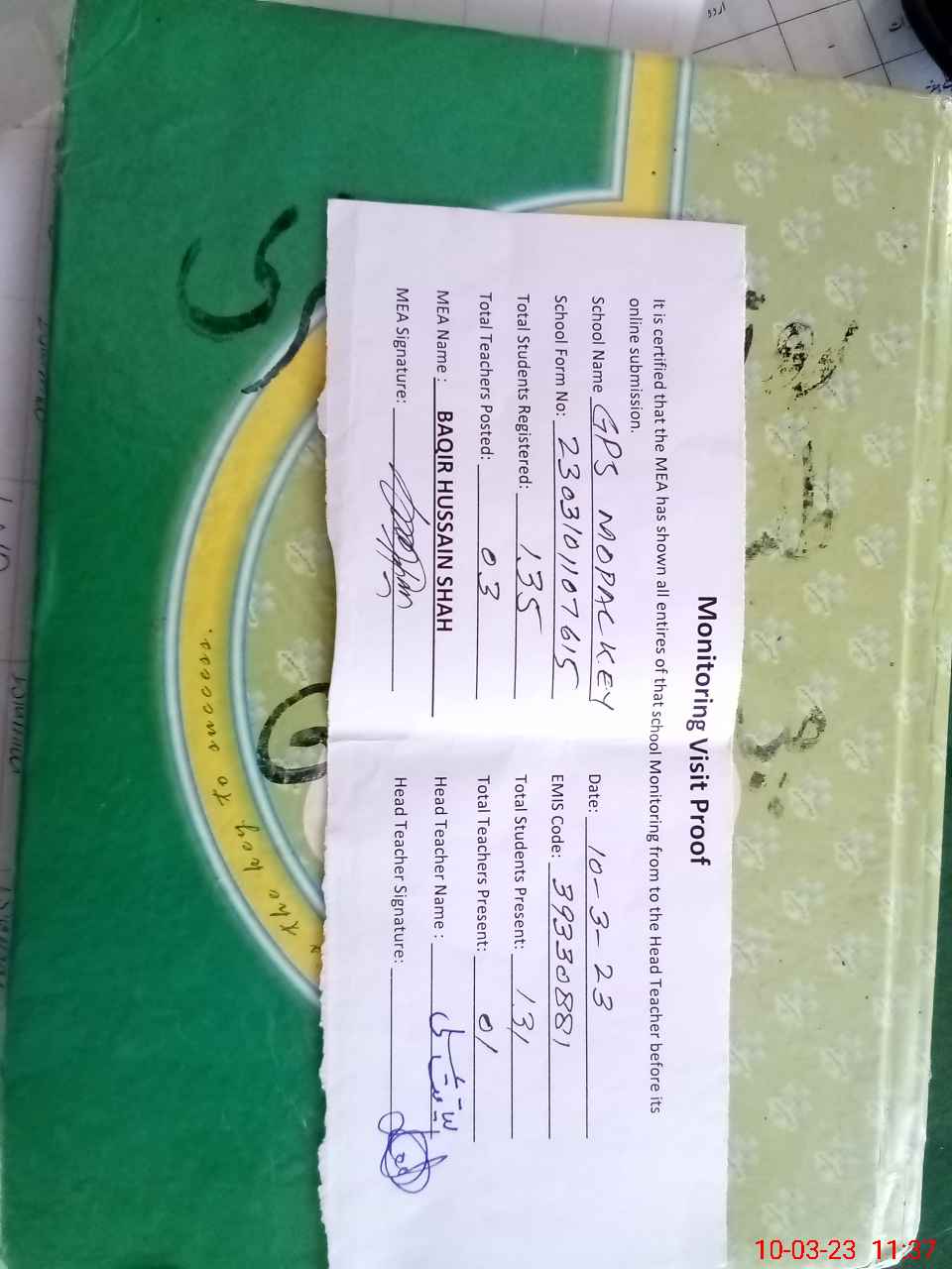 | EMIS Code: 39330881 | Name of School: GPS MOPAL KEY | |||