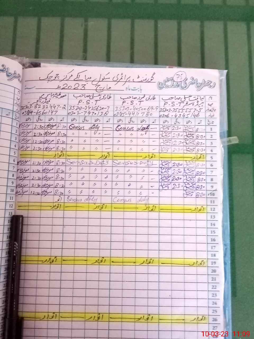 | Name: LI**** Al**** Designation: (School Headmaster's/Headmistress's) PST Phone/Cell Number: 03**** |