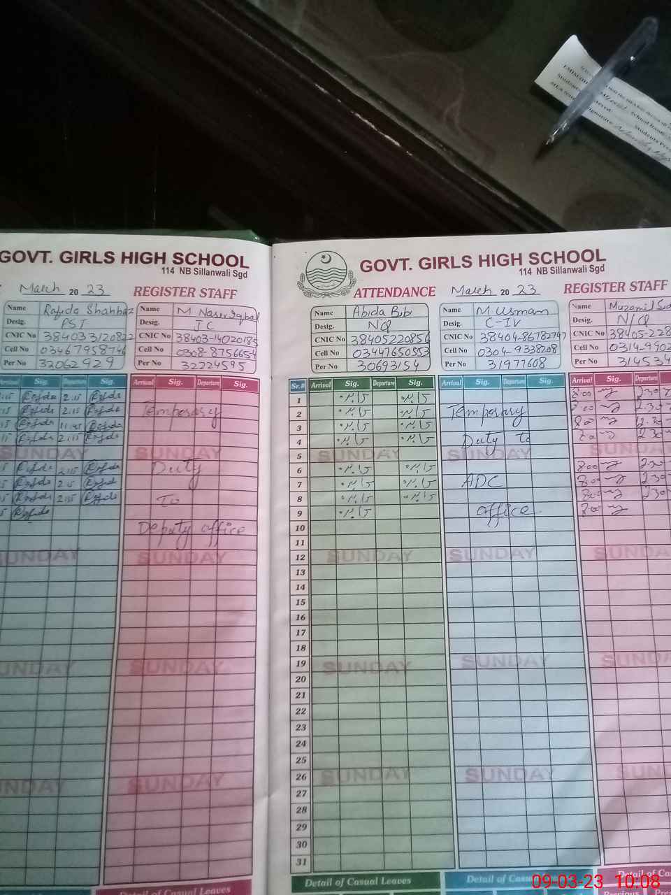 | CNIC | Full Name | Designation | R/C | Absence During Last Calender Month |