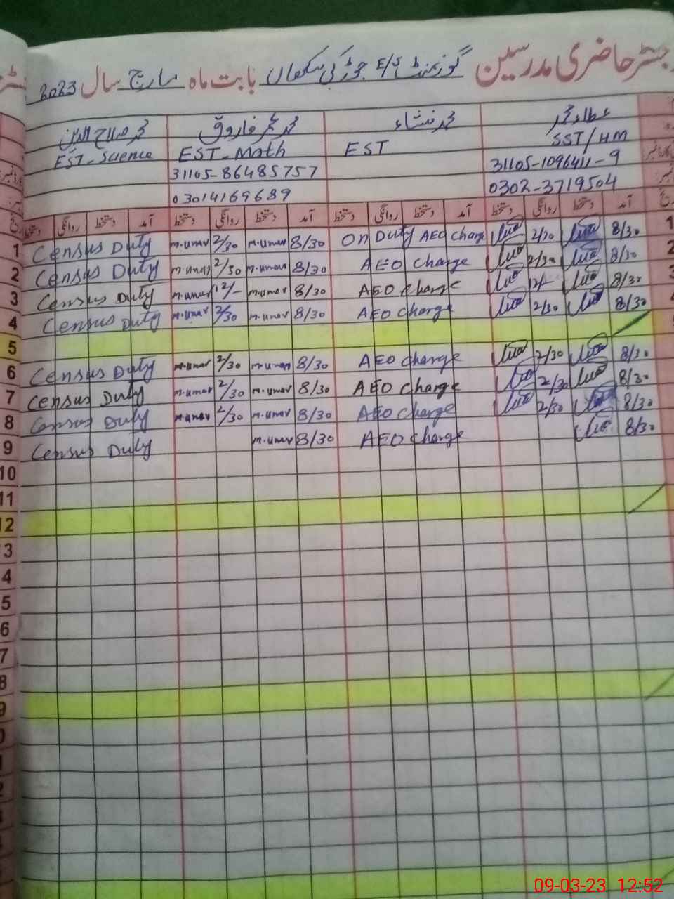 | Name: AT**** MU**** Designation: (School Headmaster's/Headmistress's) Sst Phone/Cell Number: 03**** |