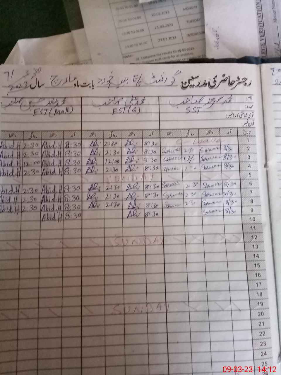 | CNIC | Full Name | Designation | R/C | Absence During Last Calender Month |