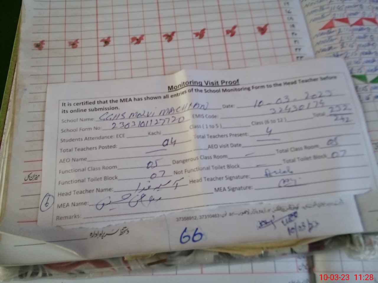 | EMIS Code: 32430174 | Name of School: GGHS MOLVI MACHIAN | |||