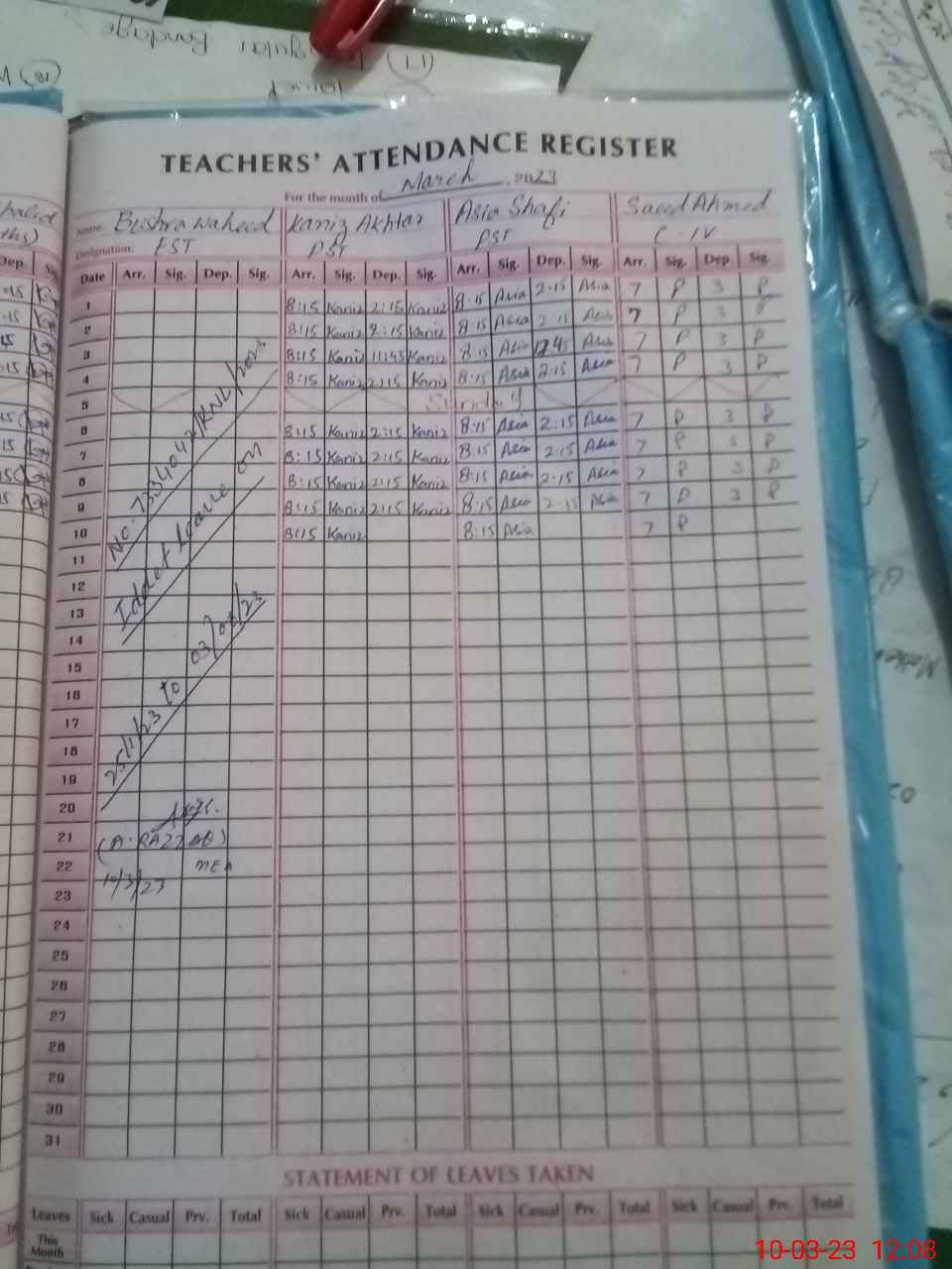 | Leave | Duty | Absent | Maternity | Medical | Ex- Pak |
