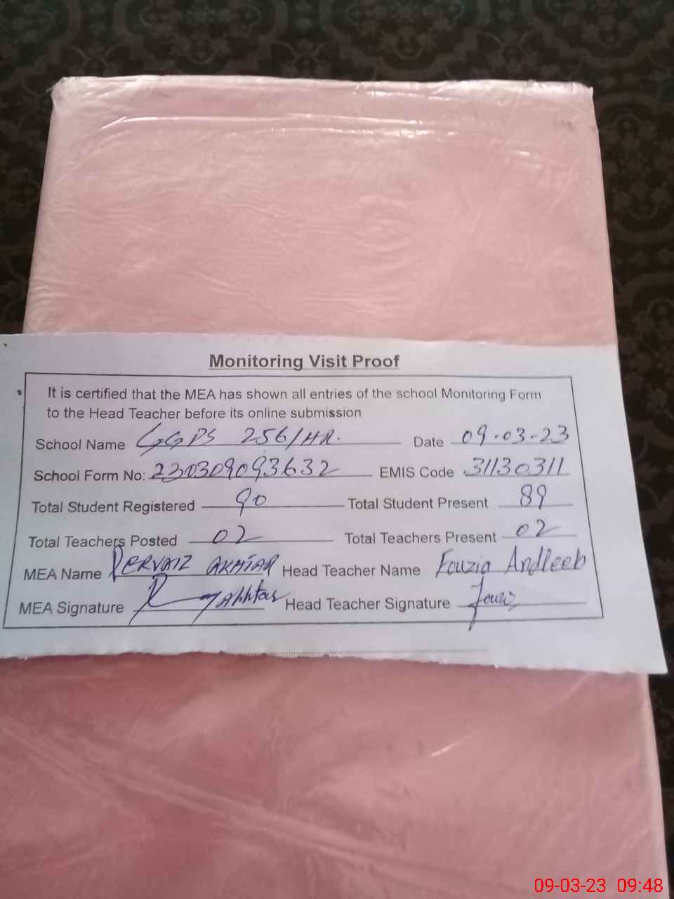 | EMIS Code: 31130311 | Name of School: GGPS CHAK NO 256/HR | |||