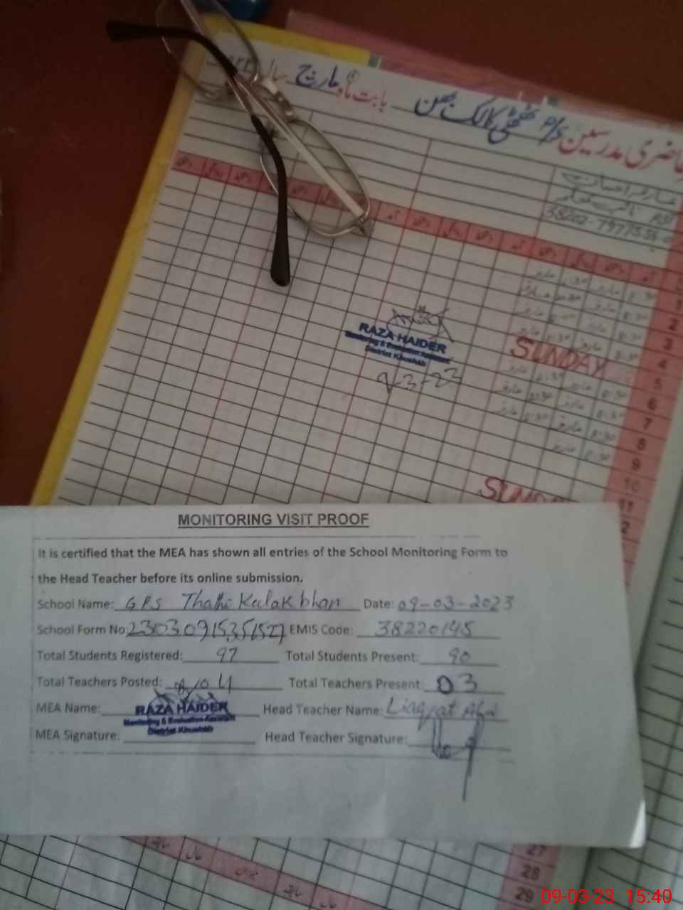 | EMIS Code: 38220145 | Name of School: GPS THATTI KALAK BHAN | |||