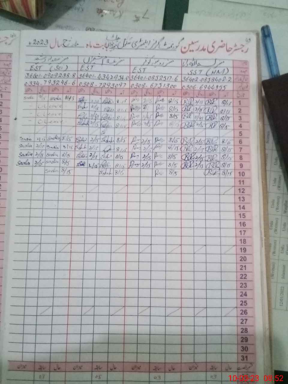 | Name: BI**** KH**** Designation: (School Headmaster's/Headmistress's) SST (GENERAL) Phone/Cell Number: 03**** |
