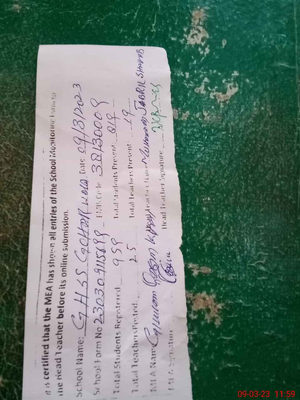 | EMIS Code: 38130009 | Name of School: GHSS GOHAR WALA | |||