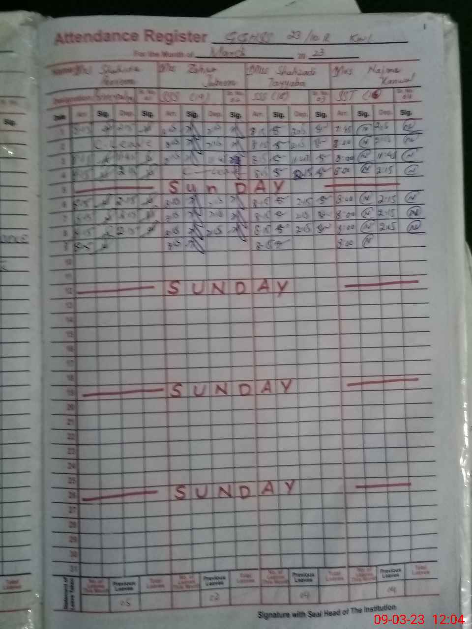 | Leave | Duty | Absent | Maternity | Medical | Ex- Pak |