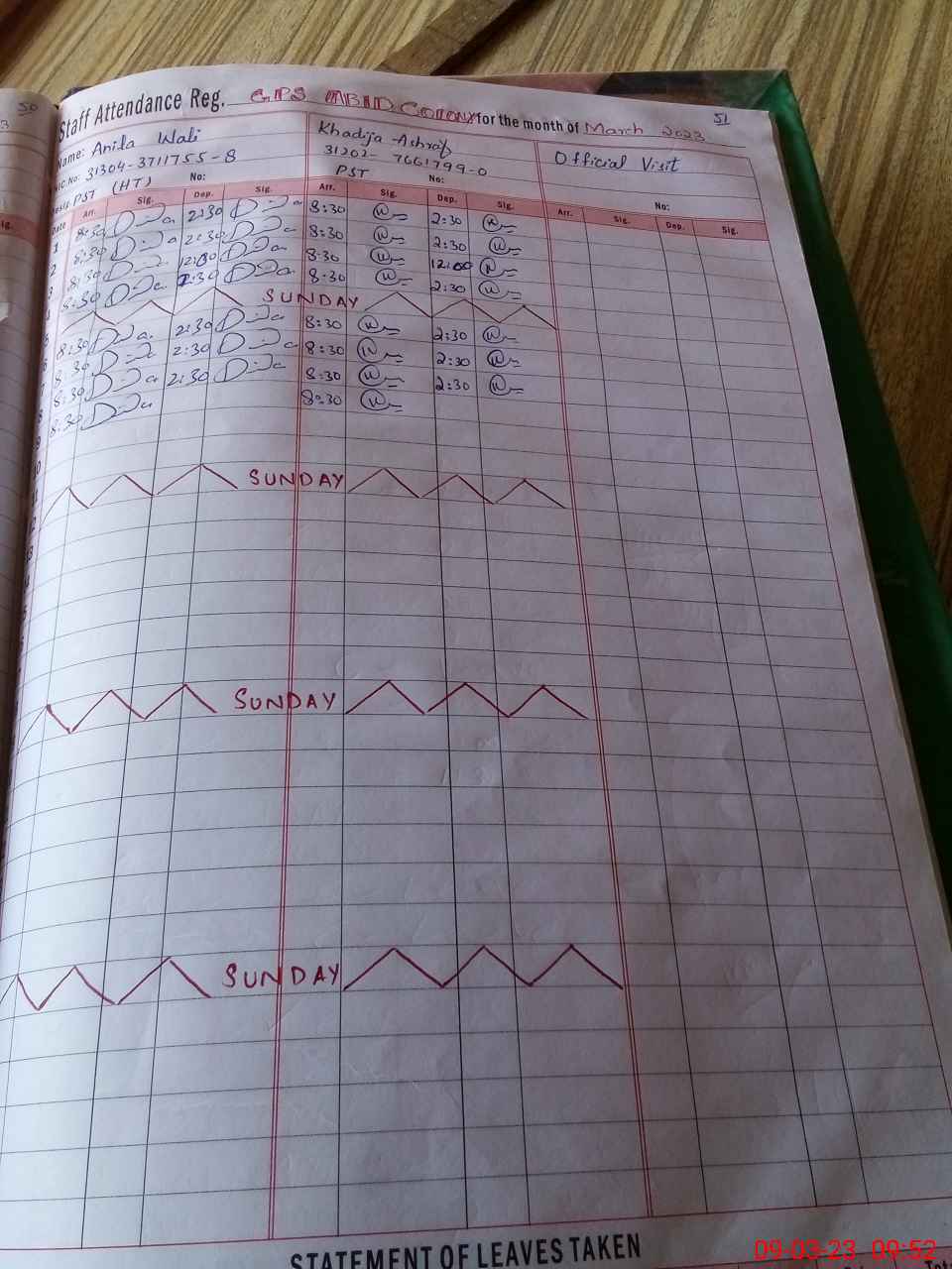 | CNIC | Full Name | Designation | R/C | Absence During Last Calender Month |