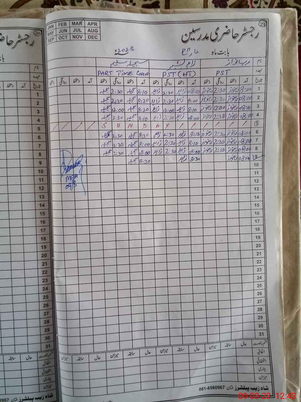 | Name: Za**** Ba**** Designation: (School Headmaster's/Headmistress's) PST Phone/Cell Number: 03**** |