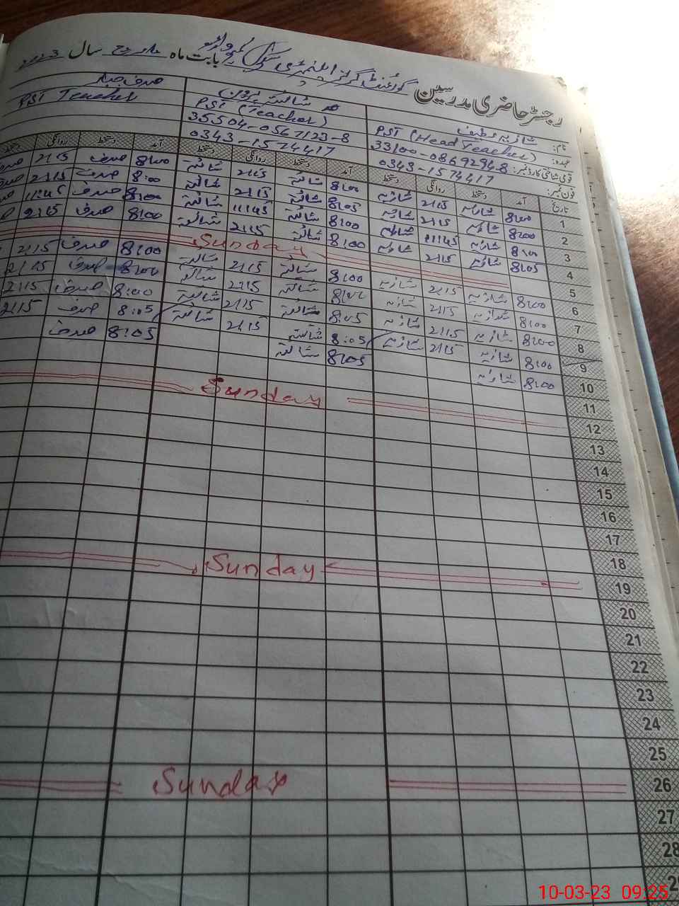 | Name: SH**** LA**** Designation: (School Headmaster's/Headmistress's) PST Phone/Cell Number: 03**** |