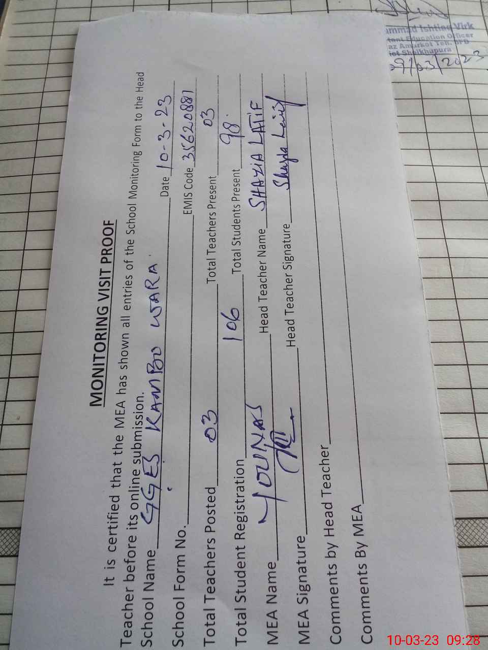 | EMIS Code: 35620881 | Name of School: GGES KAMBO WARAH CHAK 284 | |||