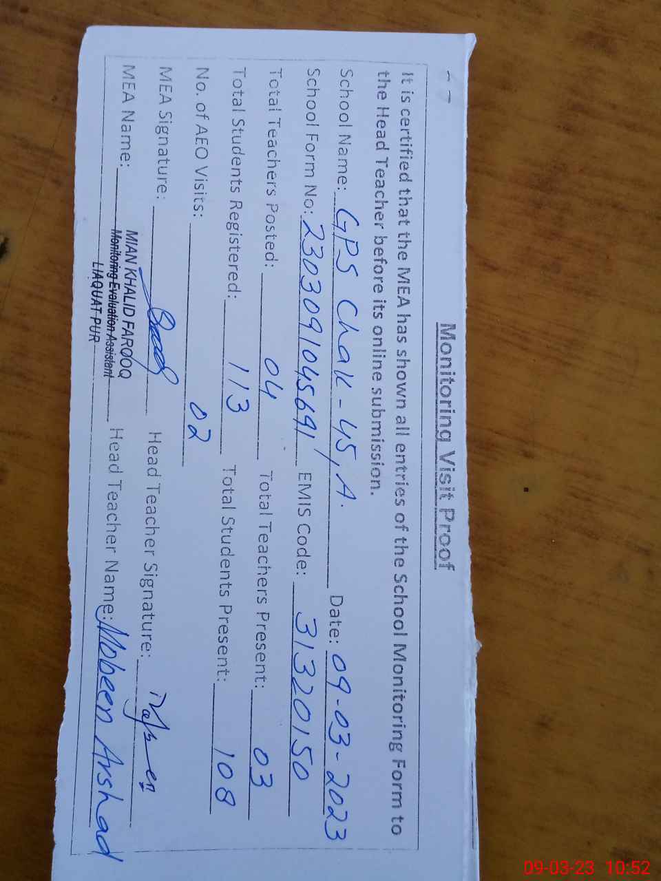 | EMIS Code: 31320150 | Name of School: GPS 45 A | |||