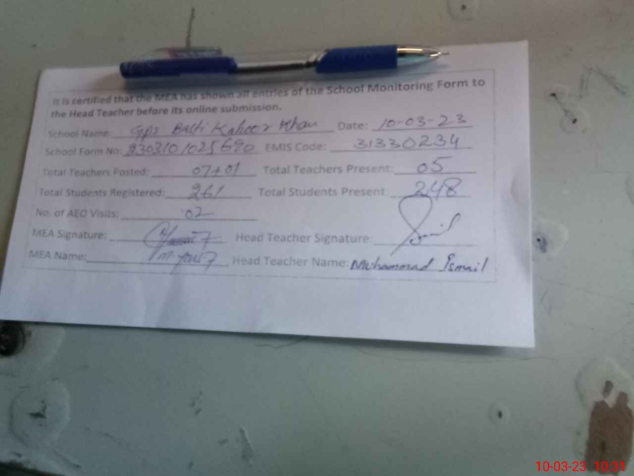 | EMIS Code: 31330234 | Name of School: GPS BASTI KAHOOR KHAN | |||