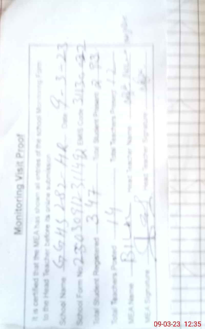 | Certified that this School was Inspected by the Undersigned MEA/DMO Today and the Information Stated Above is as Per Record. | |||||