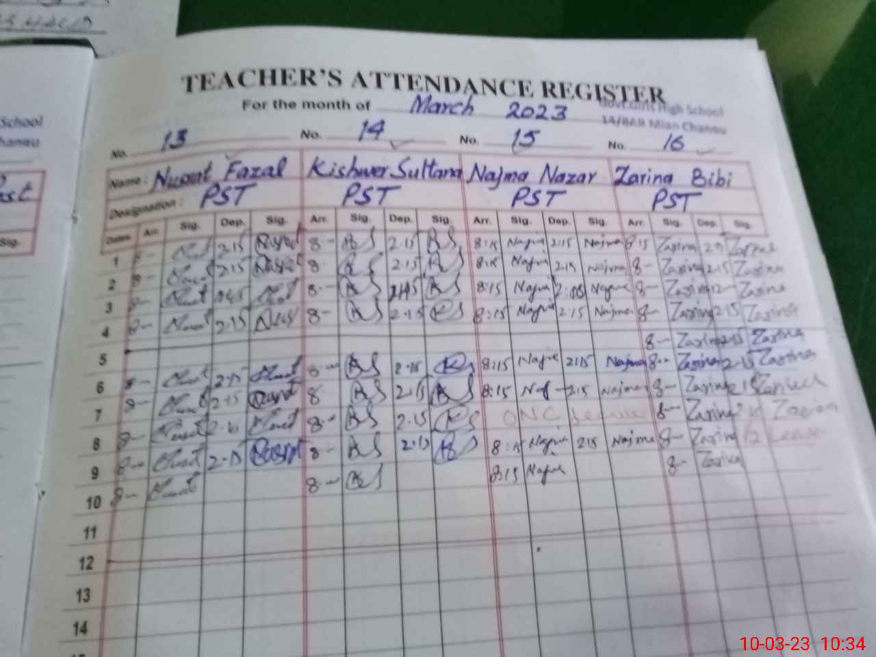 | CNIC | Full Name | Designation | R/C | Absence During Last Calender Month |